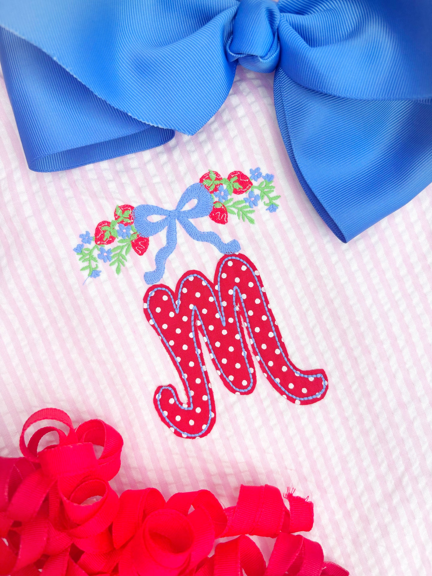 Baby Girl Seersucker Strawberry One Initial Bubble